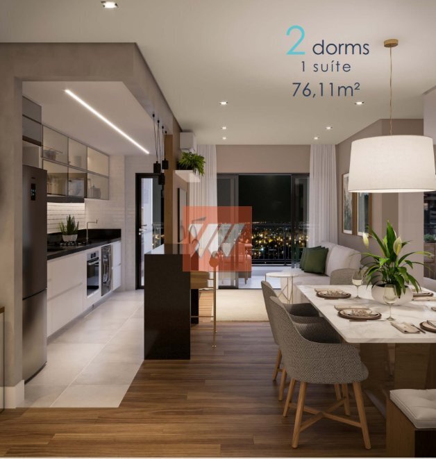 2 Dormitórios, sendo 1 suíte1 Banheiro1 Vaga1 Cozinha1 Sala de jantar1 Área de serviço