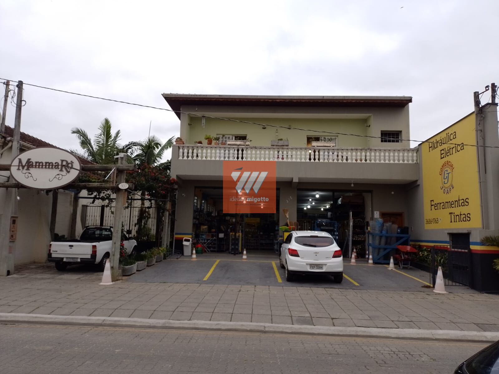 Na parte inferior possui um ponto comercial amplo, com área útil 266.30m² com banheiros, garagem para 04 veículos.