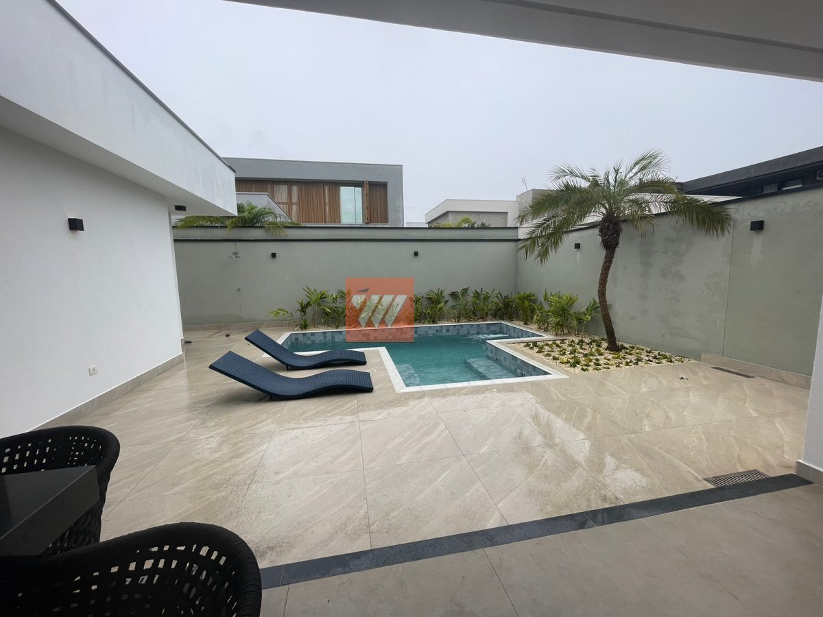 Ele é composto por 04 dormitórios sendo 02 suítes , ampla sala com 02 ambientes, sala de jantar integrada com a cozinha, espaço gourmet com churrasqueira e piscina, sauna e garagem para 04 veículos sendo 02 cobertas.